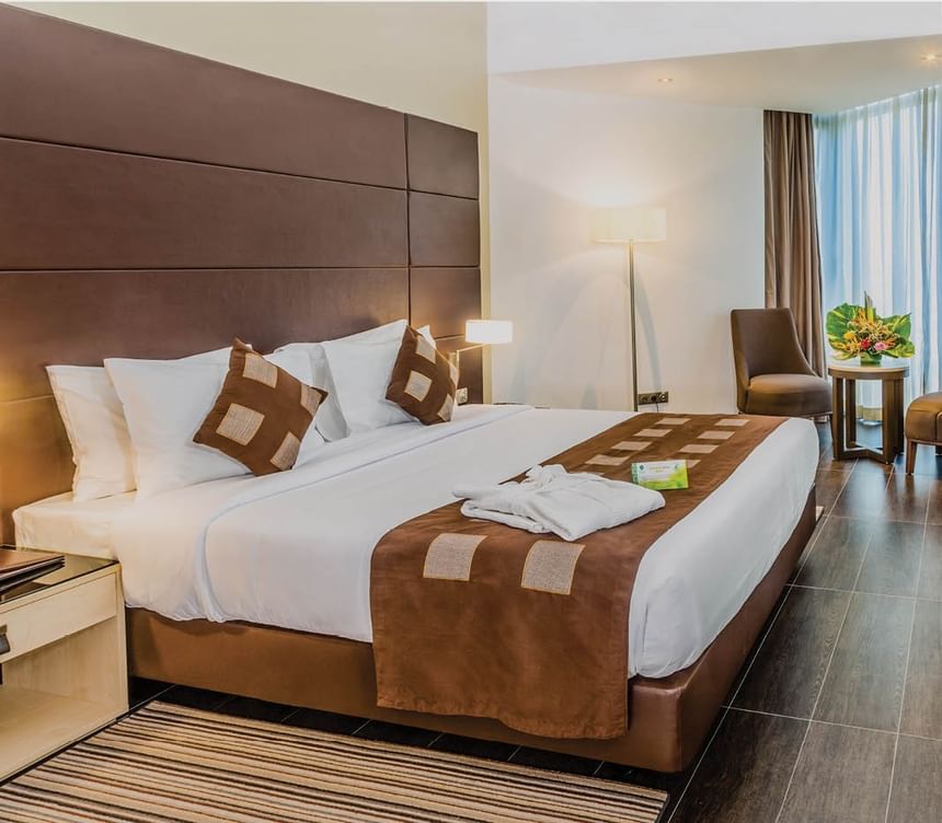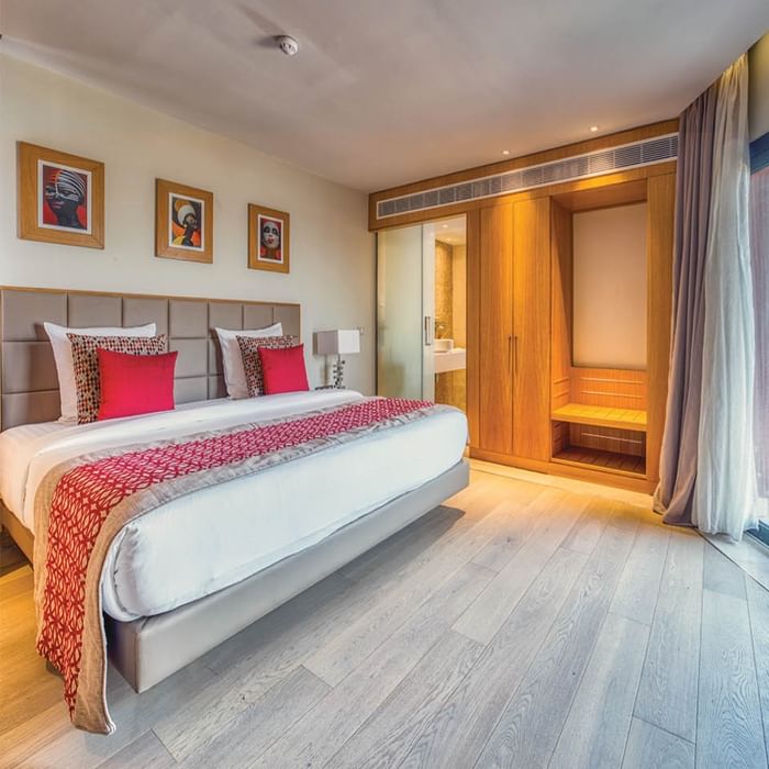 Confortables et raffinées, Les chambres et suites de notre hôtel combinent harmonieusement confort moderne et design traditionnel africain.